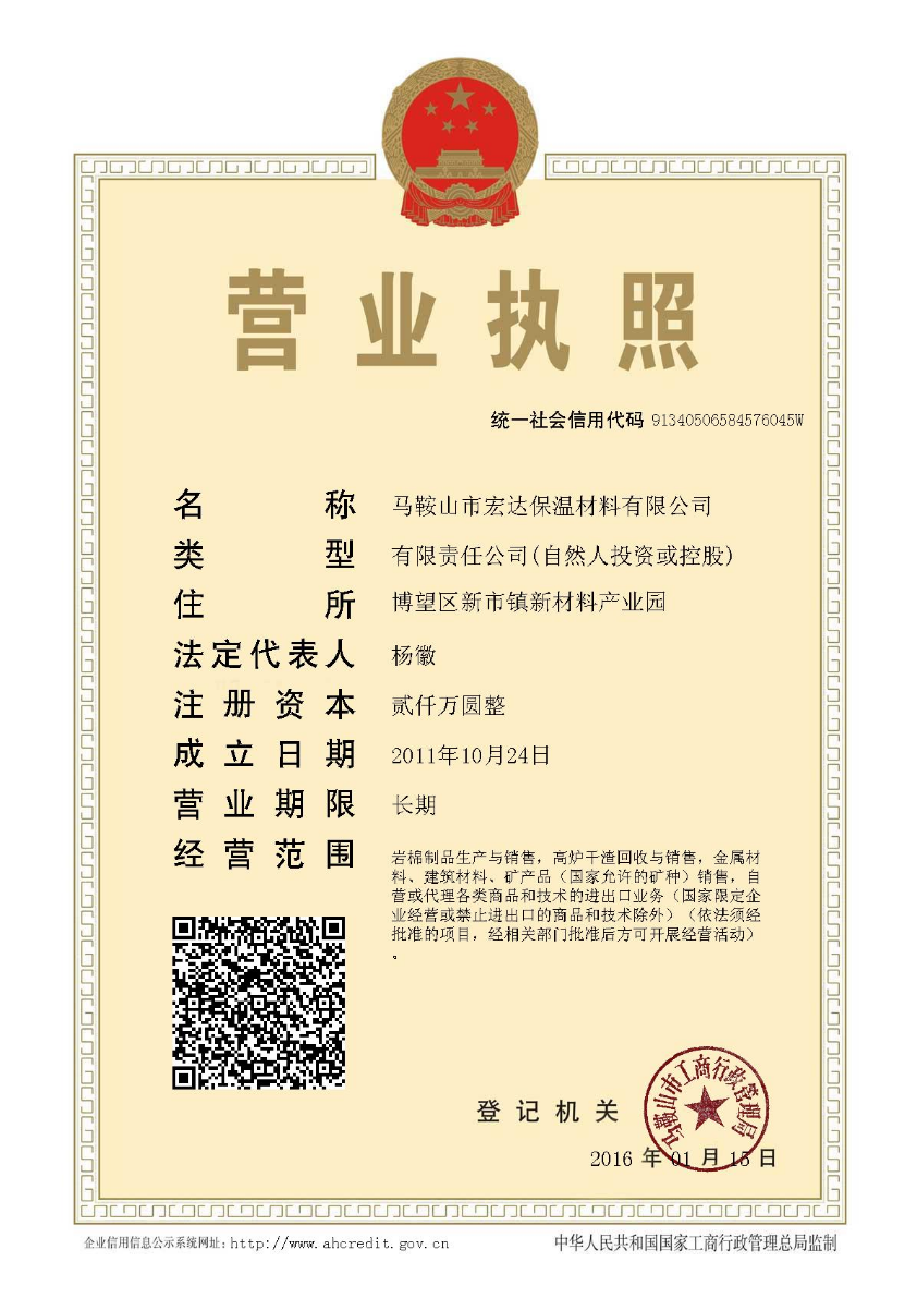 馬鞍山市宏達(dá)保溫材料有限公司成立于2011年10月,注冊(cè)資金2000萬(wàn)元,廠(chǎng)址位于安徽省馬鞍山市博望新區(qū)新材料工業(yè)園,交通便捷。公司通過(guò)不斷發(fā)展現(xiàn)有員工120余人,是目前國(guó)內(nèi)巖棉制造企業(yè)之一。 馬鞍山市宏達(dá)保溫材料有限公司于2011年創(chuàng)建,...