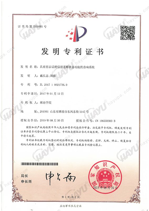 具有顯示話簡信道通斷狀態(tài)功能的音響系統(tǒng)發(fā)明專利