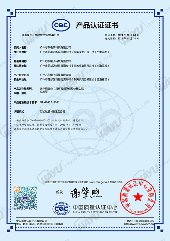 數(shù)字調(diào)音臺-CQC認(rèn)證