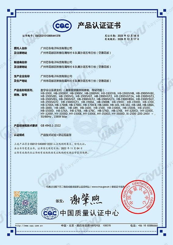 數(shù)字會議系統(tǒng)主機(jī)-CQC認(rèn)證