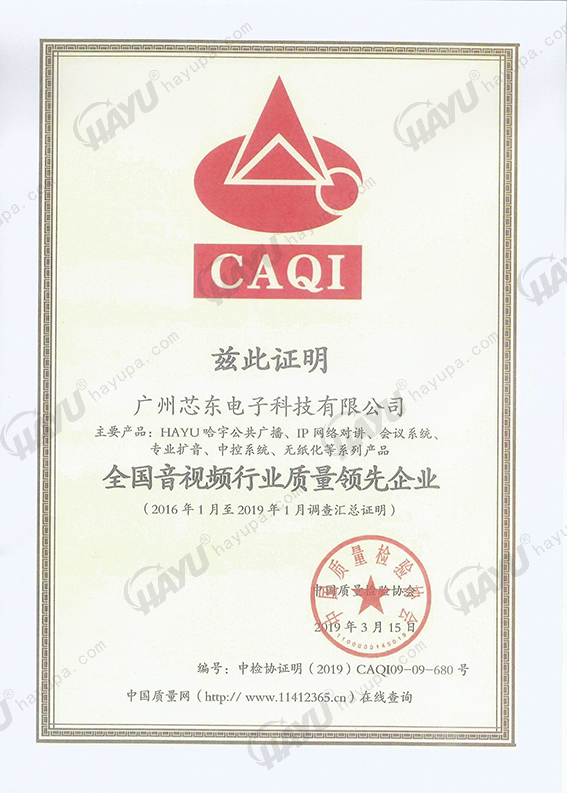 全國音視頻行業(yè)質(zhì)量領(lǐng)先企業(yè)證明榮譽(yù)證書