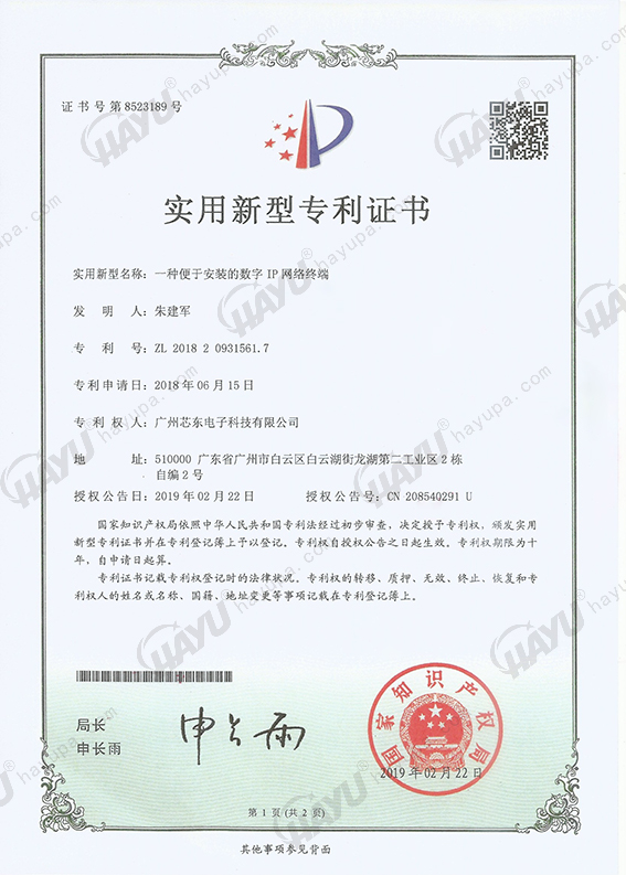 一種便于安裝的數(shù)字IP網(wǎng)絡(luò)終端實用新型專利