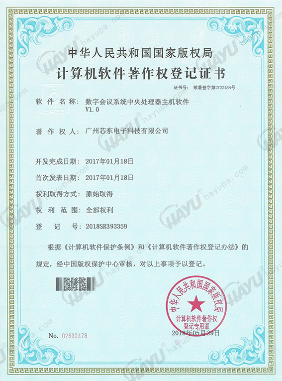 數(shù)字會議系統(tǒng)中央處理器主機(jī)軟件軟著